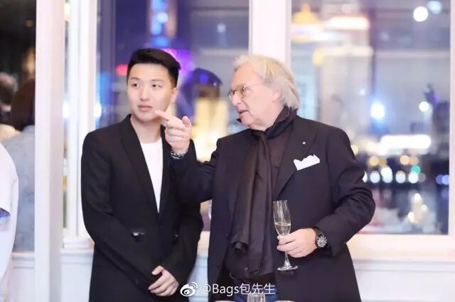 包先生参加Tod's晚宴,与创始人Della Valle在一起(图片来源:包先生微博)