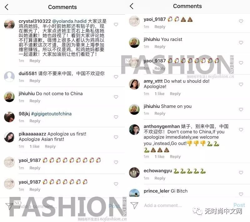 即将参加上海维密秀的网红Gigi Hadid涉嫌歧视亚洲人,ins遭遇大量批评评论